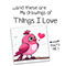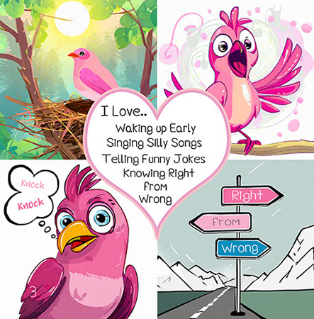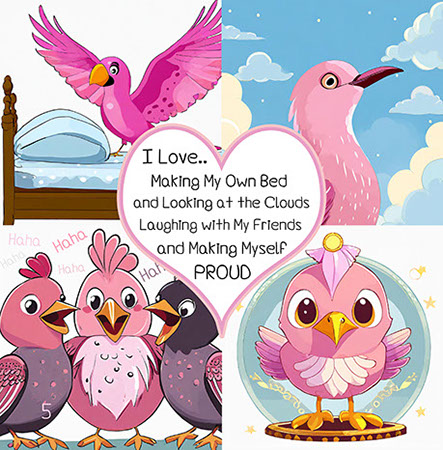 Betty the Bubbly Bird shares the Things She Loves in a series of wonderfully artistic drawings. In this rhyming poem of Things I Love, Betty shares with the reader all the things she can think of pertaining to all the things she loves and things she loves to do. The images on each page reflect the story she is telling. This story is both entertaining for your little one and the older reader; ending in a Loving message that will leave everyone feeling happy and full of warm loving inspiration. I hope you enjoy this book.. and thank you for being my friends.