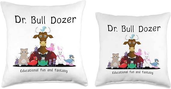 Enjoy the comfort and styling of this beautiful and fun “Dr. Bull Dozer and Friends” decorative throw pillow. Have a relaxing place to rest your head while enjoying Dr. Bull Dozer’s books and videos. Dr. Bull Dozer is the author of several books and videos introducing young readers to Educational Fun and Fantasy. His stories and educational books are dedicated to making the world a better place for our future generations. This “Dr. Bull Dozer and Friends” design is one that will spread joy and happiness to everyone. Let that little one in your life experience the thrill of reading and learning with Dr. Bull Dozer's unique stories and lovable characters. Help support Dr. Bull Dozer in his quest to spread the joy of reading through his collection of Educational Fun and Fantasy books and videos. Not only can you buy one for that joyful child or children in your life, but you can also purchase one for yourself.