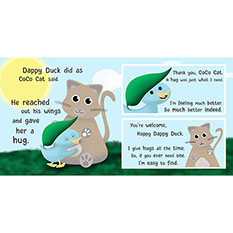 Third – Dappy Duck is helped by CoCo the Cuddly Cat. CoCo shows Dappy that he truly does have many friends.